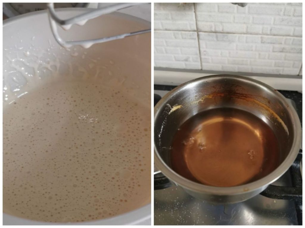 En un cazo, vierto el agua y el azúcar, pongo el cazo a fuego bajo, removiendo de vez en cuando el contenido con una cuchara, el jarabe estará listo en pocos minutos. Con el termómetro de cocina controlo la temperatura, que debe ser de 121°. Tan pronto como el jarabe esté listo, lo vierto sobre las yemas que mientras tanto batiré a velocidad máxima, durante 5/6 minutos, hasta que el bol esté frío y las yemas estén perfectamente montadas, en una mezcla clara y firme, de esta manera habremos pasteurizado los huevos. Agrego el vino blanco en hilo a la mezcla de huevos y azúcar, siempre mezclando, amalgamando bien todo