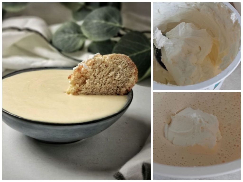 En este punto, añadid el mascarpone ablandado, poco a poco, y amalgamadlo con el resto de los ingredientes mezclando con una cuchara. Cubrid la crema obtenida con un film de contacto, y dejadla reposar en el frigorífico hasta el momento de servirla. Servid una rebanada de buslàn con una cucharada de crema