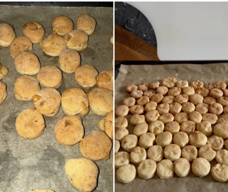 Acabado: Coloca los saladitos en una bandeja forrada con papel de horno, espaciándolos ligeramente.