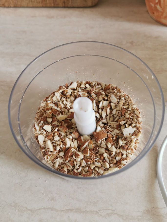 Las almendras deben ser picadas de manera gruesa, para dar al postre su característica consistencia desmenuzable.
