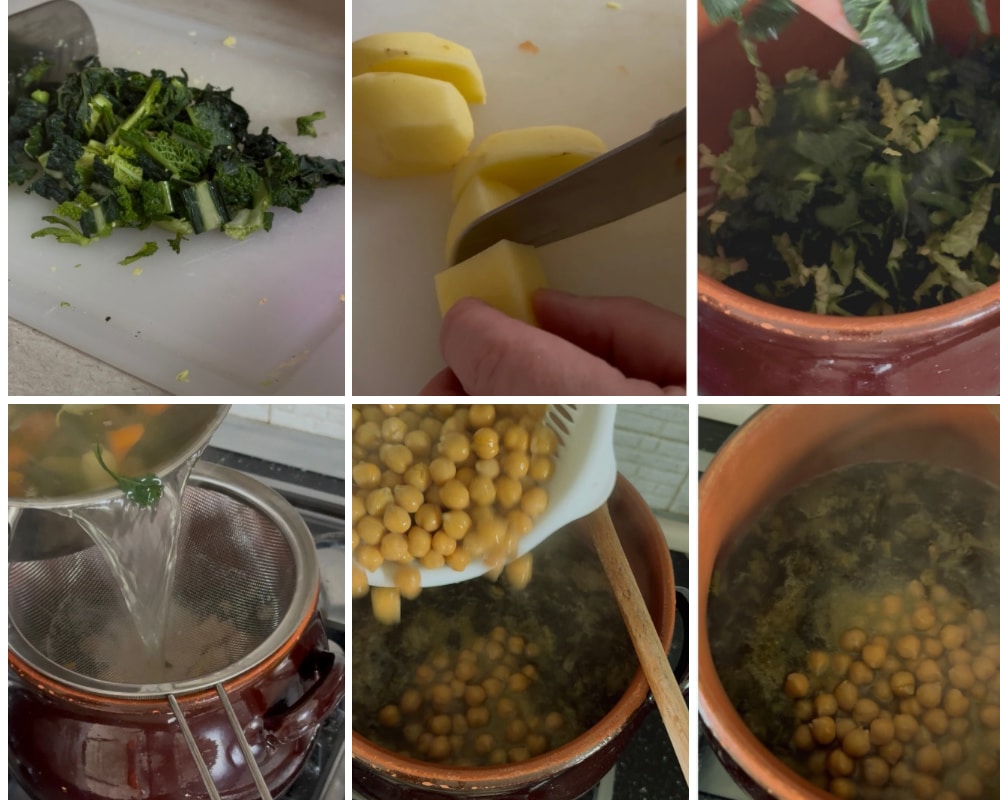 La sopa de col rizada, patatas y garbanzos es un plato de la tradición campesina, simple y sabroso, perfecto para calentar los fríos días de invierno. La combinación de col rizada, rica en vitaminas y antioxidantes, patatas, fuente de carbohidratos complejos, y garbanzos, ricos en proteínas vegetales y fibras, crea un plato completo y equilibrado. Una sopa que celebra la cocina humilde, pero rica en sabores auténticos y genuinos.