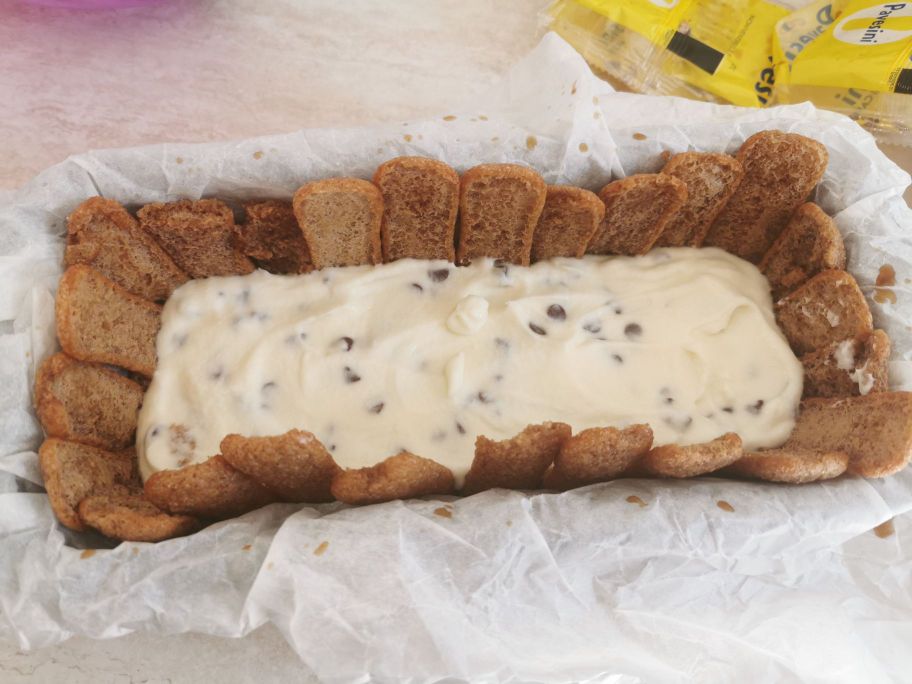Forrad un molde de plumcake con papel de horno. Con los pavesini empapados en el café forrad el molde (base y lados)