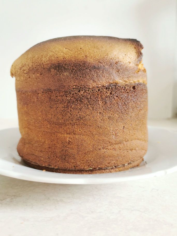 Primero preparamos la base, siguiendo la receta del bizcocho. Usé un molde de 14 cm de diámetro y 14 cm de alto