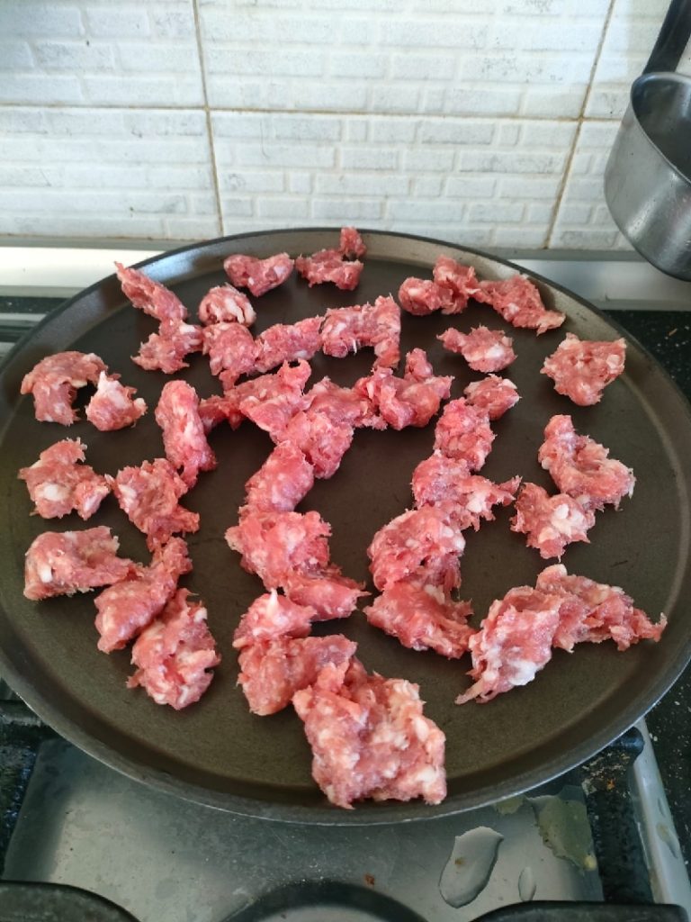 Mientras tanto, tuesta durante unos minutos la salchicha, cortada en trozos y sin piel, en una plancha para grill