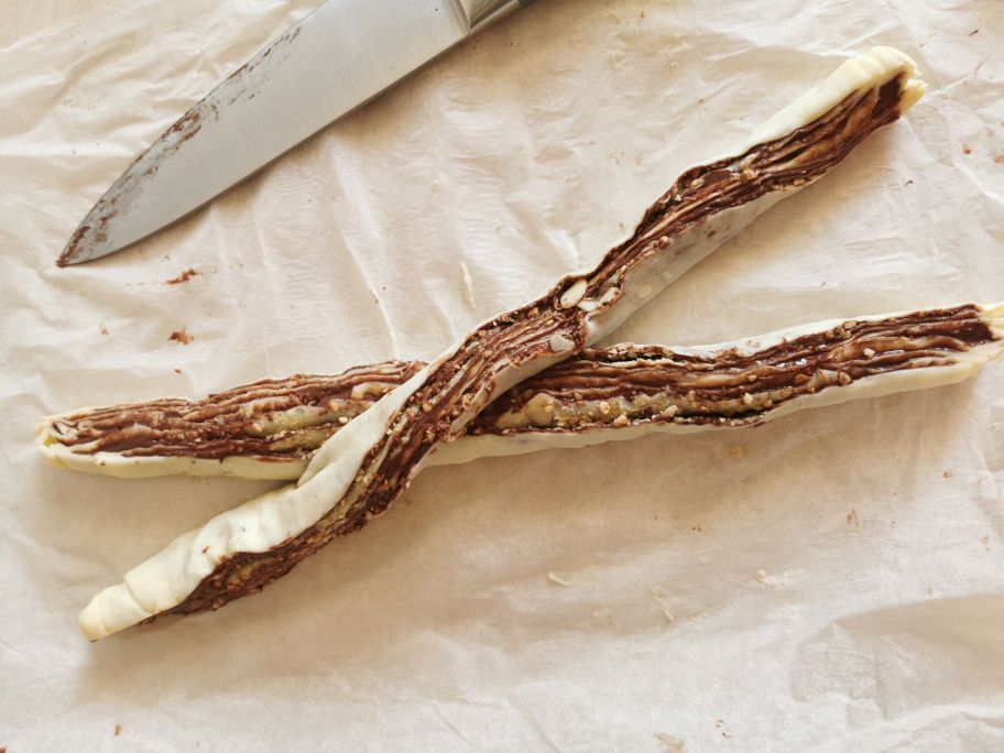 Conservación, variación trenza de hojaldre con nutella