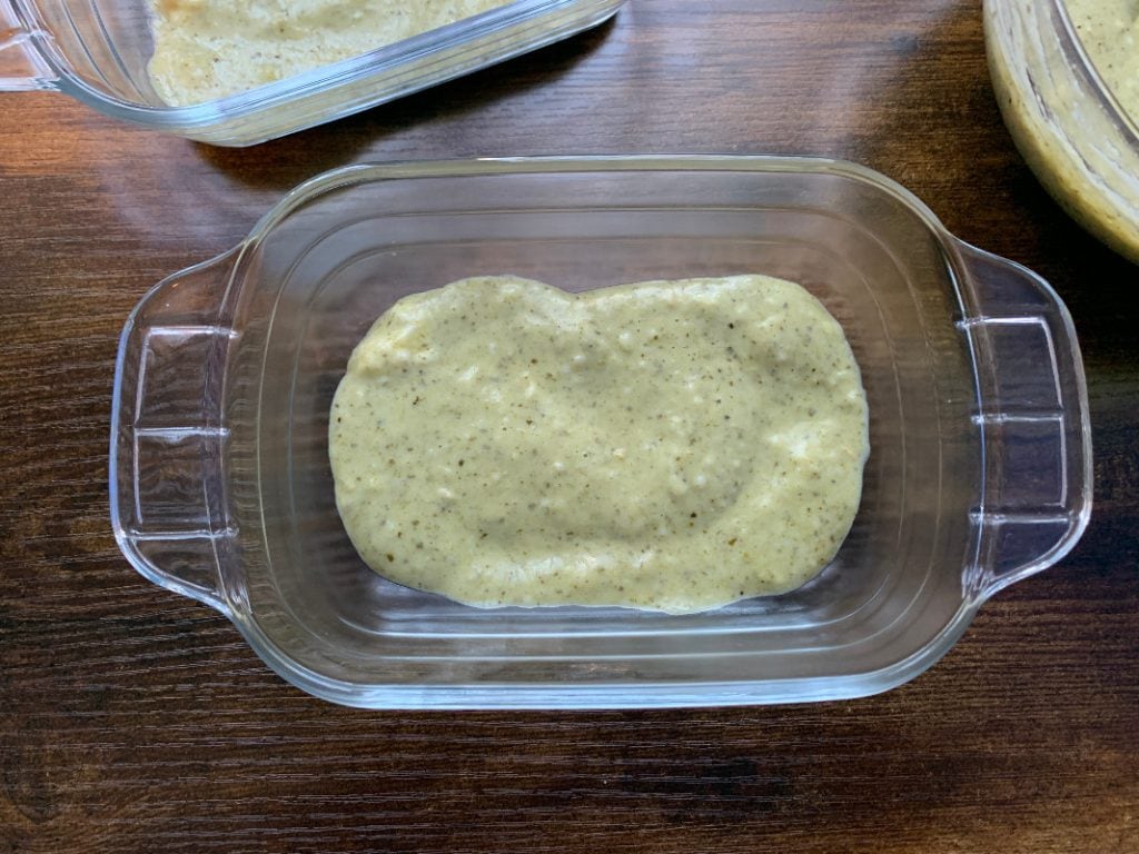 Pon una capa de bechamel y pesto en una fuente de vidrio, nosotros hemos hecho porciones individuales y hemos hecho 3 con 3 nidos para cada comensal, puedes usar tranquilamente una fuente única.