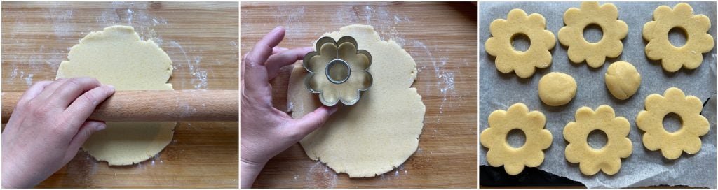 Recortad vuestros canestrelli de la masa y colocadlos en una bandeja forrada con papel de horno.