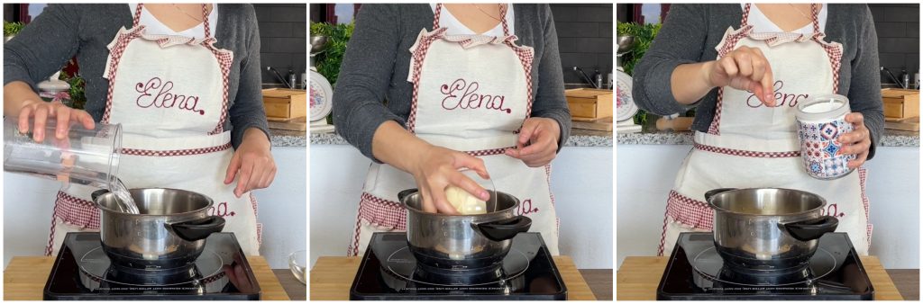 Cuando el agua y la mantequilla estén calientes, añade también una pizca de sal.