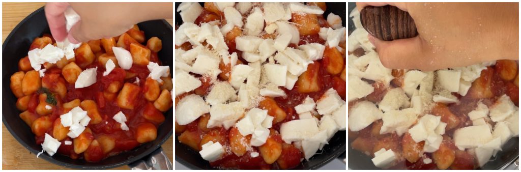 Gnocchi a la sorrentina en sartén buenísimos y súper fundentes! Un plato perfecto para preparar en verano, quizás con la salsa de tomate fresca preparada con los tomates del huerto madurados al sol!