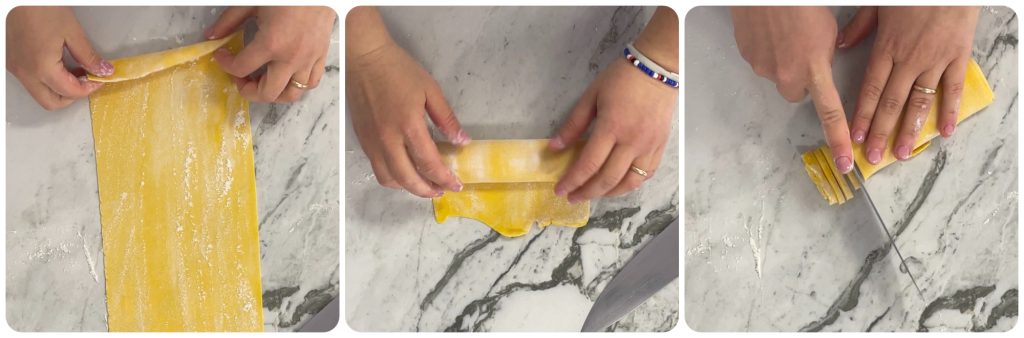 Después corta las tagliatelle con un cuchillo o a mano.