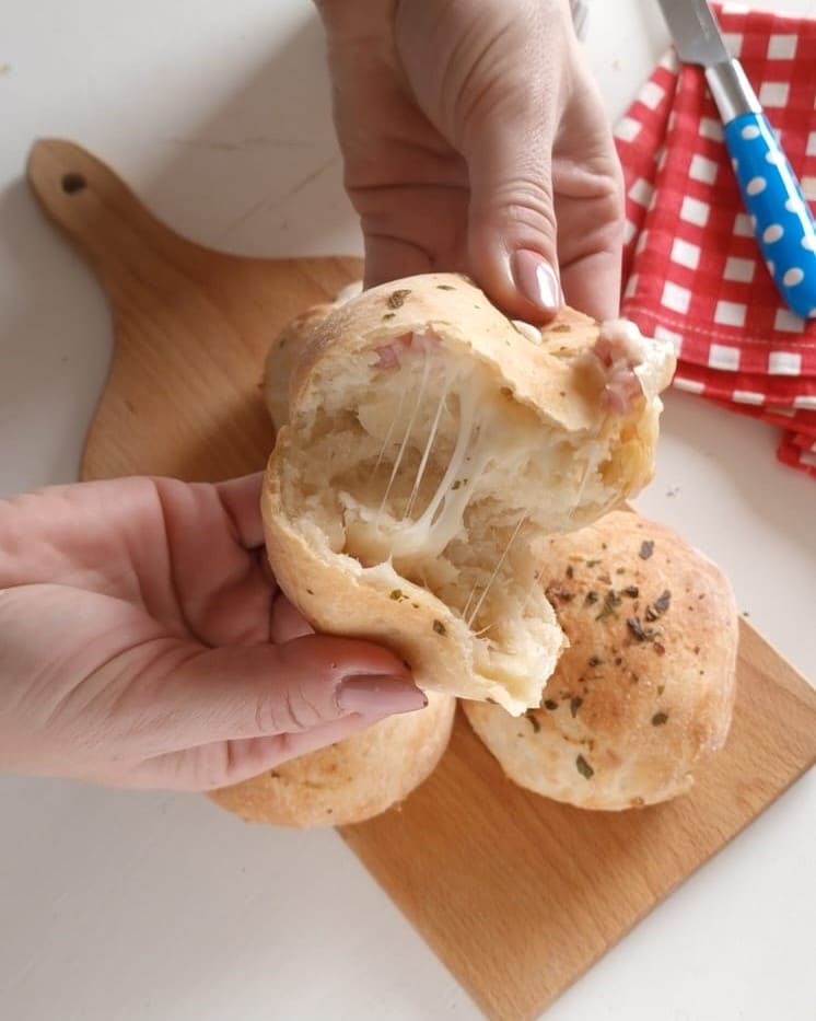 Los bocadillos rápidos con jamón y queso son una receta fácil y original. ¿Ya habéis probado los bocadillos napolitanos suavísimos? Esta vez los he hecho con levadura instantánea, así que sin largos tiempos de reposo. Rústicos muy sabrosos, rellenos de jamón cocido y queso, son aromatizados con mantequilla y ajo. ¡La receta es excelente también para vaciar la nevera! Podéis sustituir los ingredientes según vuestros gustos, utilizarlos para buffets y fiestas de cumpleaños, o bien como aperitivos, más que para una merienda deliciosa, ¡los bocadillos rápidos con jamón y queso están buenísimos calientes recién horneados! ¿A qué esperáis? ¡Corred a prepararlos!
