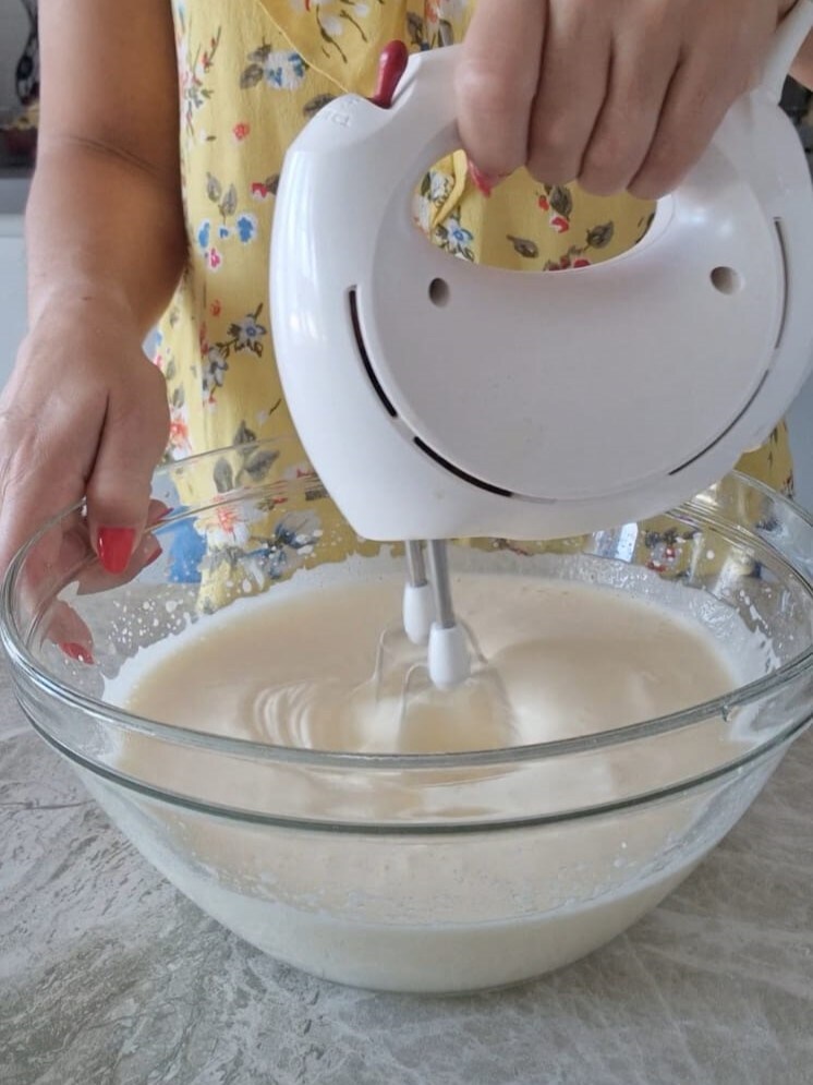 Batid con la batidora eléctrica hasta que estén bien hinchados.