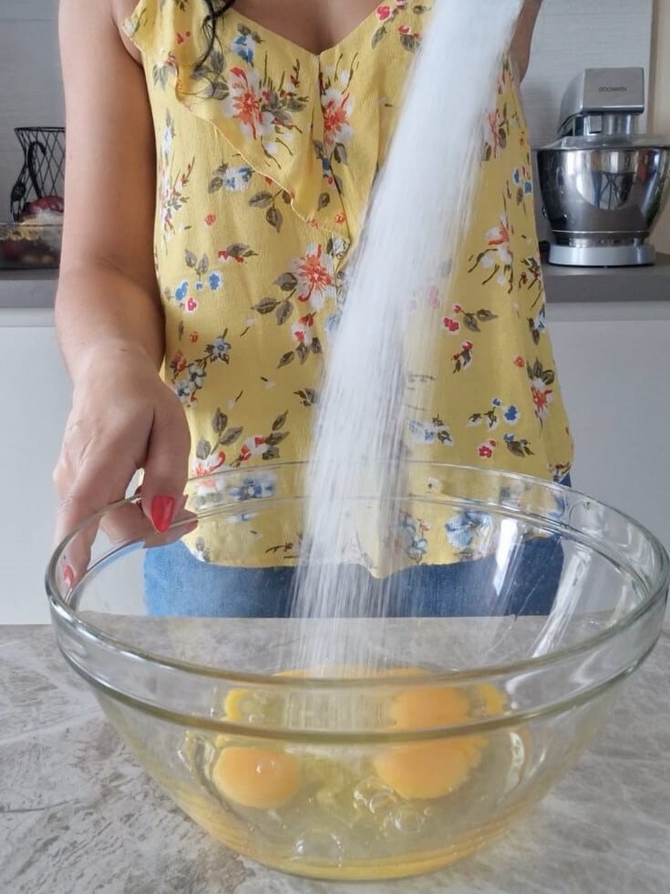 En un bol grande, montad los huevos con el azúcar y el aroma de vainilla