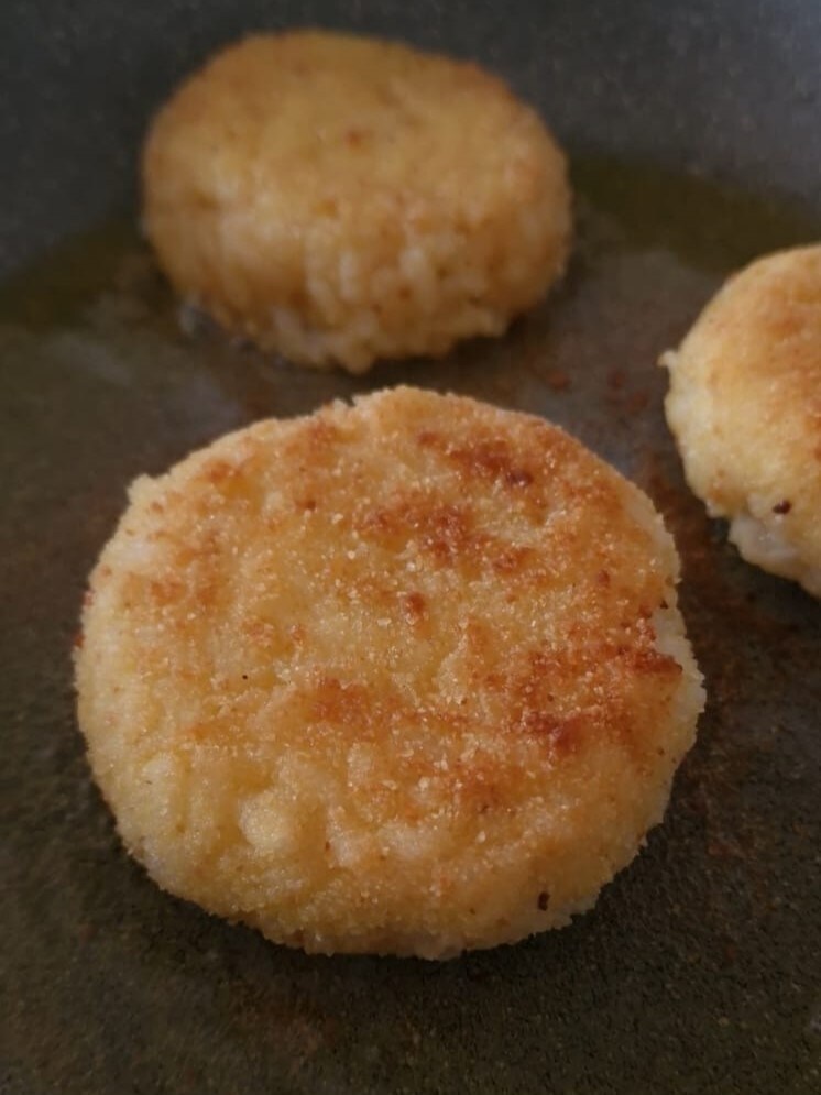 Para la cocción en sartén, bastará añadir un poco de aceite y cocinad los buñuelos de arroz a fuego alegre.