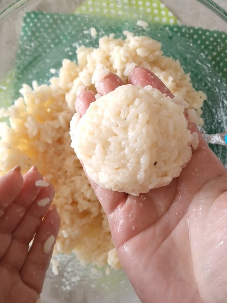 Comenzad hirviendo el arroz en agua salada, después escurridlo y dejadlo templar. A continuación, sazonadlo con el queso parmesano rallado, el huevo, la sal y la pimienta.