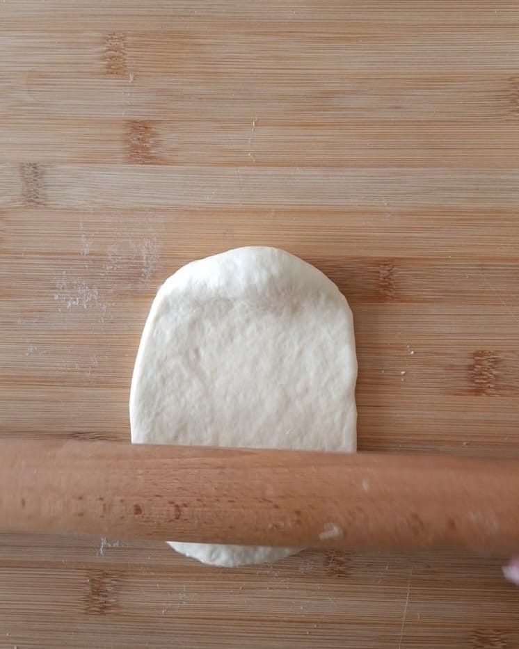 Transcurrido el tiempo de reposo divida la mezcla en 8 partes, luego con el rodillo extienda la masa formando discos.