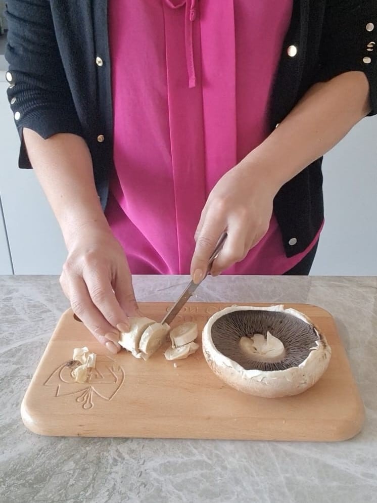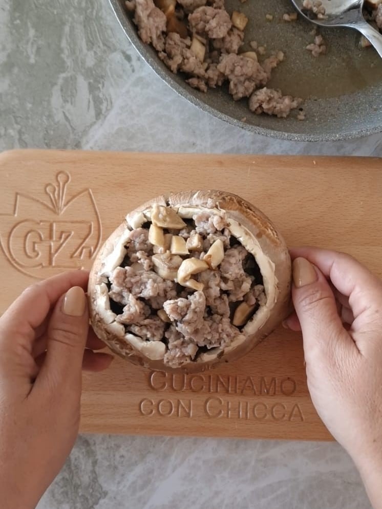 En mi versión, utilicé champiñones Portobello, pero podéis usar los que prefiráis, incluso los Champiñones. Podéis añadir al relleno la patata cocida triturada, para enriquecerlos podéis poner algún trocito de queso como scamorza o provola.