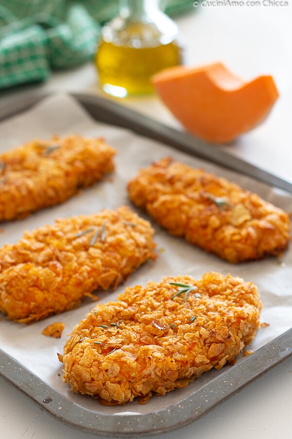 Las cotoletas de calabaza se pueden cocinar también en sartén con un poco de aceite por encima.