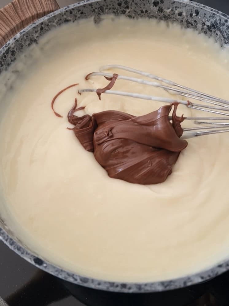 Debéis obtener la misma consistencia de la clásica crema pastelera, luego añadid un par de cucharadas de Nutella, mezclad y dejad enfriar.