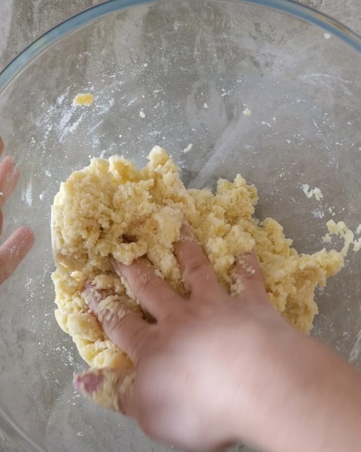 Condimentad con sal y pimienta, luego añadid el parmesano rallado y el huevo, y mezclad bien. Finalmente, incorporad la harina y amasad bien hasta obtener una mezcla homogénea.