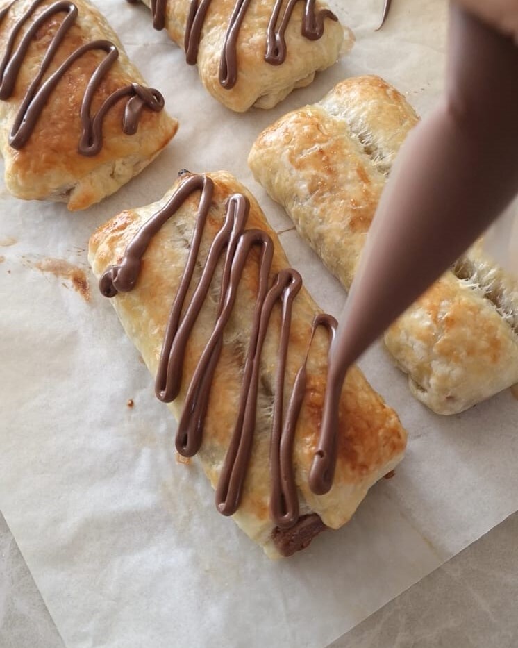 Necesitarás el hojaldre, barritas de chocolate y Nutella, para dar vida a unos dulces facilísimos. En este punto quiero dejaros también la receta de los muffins al Kinder y del tiramisú al Kinder fresco y perfecto para cualquier temporada.