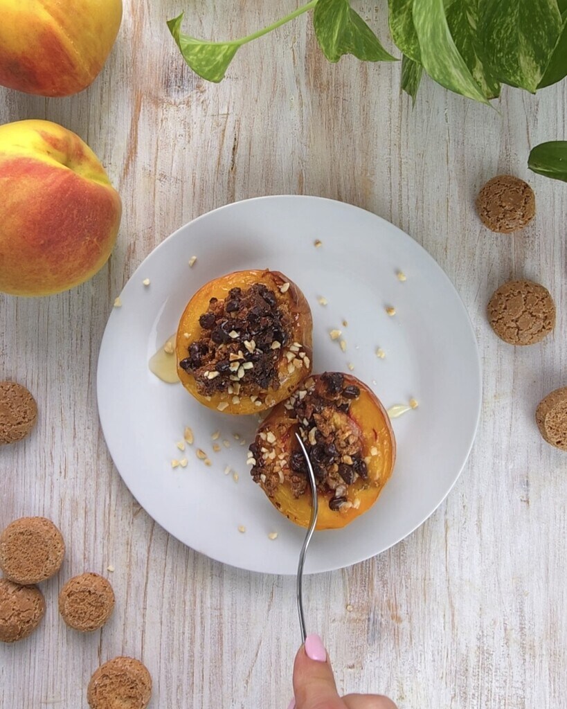 Melocotones rellenos con amaretti y almendras, ¡verdadero comfort food! Una receta fácil y deliciosa.