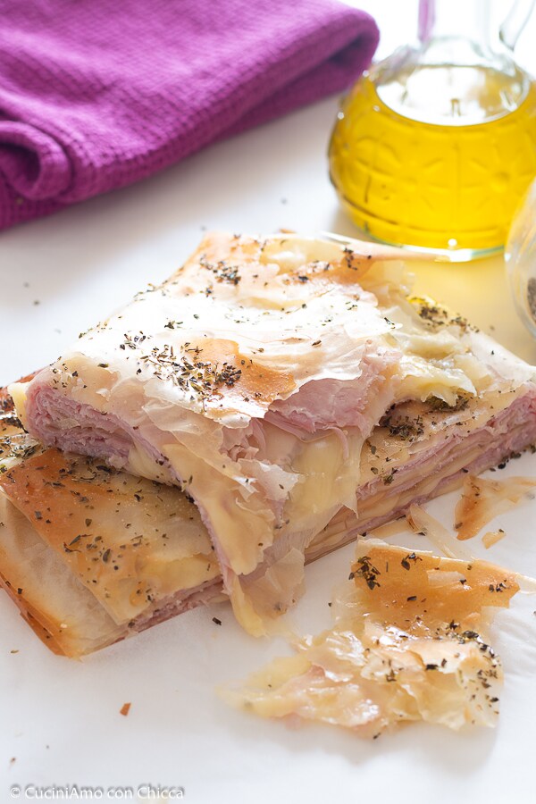 La Milhojas salada con jamón y queso es una delicia crujiente y sabrosa sin demasiadas calorías. Me encanta la pasta filo y cuando tengo la oportunidad la preparo a menudo, ¿habéis probado ya los rollitos de pasta filo con manzanas o los paquetitos de pasta filo a la pizzaiola? ¡La receta de hoy es igual de deliciosa! Si os he convencido, leamos juntos la receta.