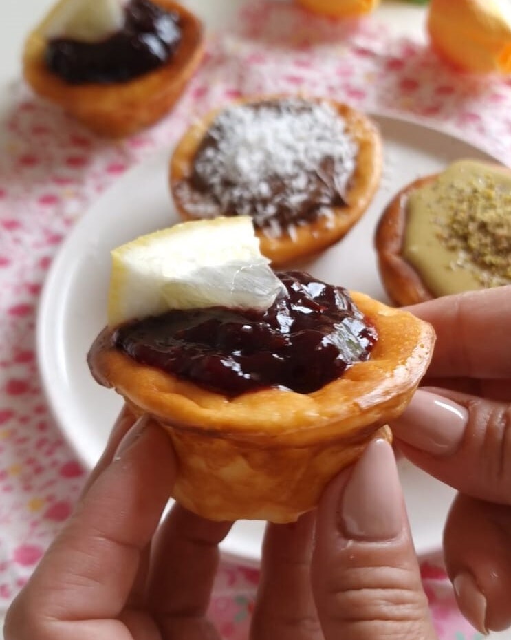 Coced vuestras mini cheesecake en el horno a 170°C durante 25 minutos o hasta que estén doradas.