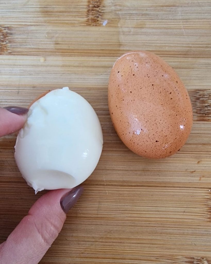 Comenzad cociendo los huevos: llevad el agua a ebullición. Cocinad durante 8 minutos, después escurridlos y enfriadlos en agua fría y luego peladlos.