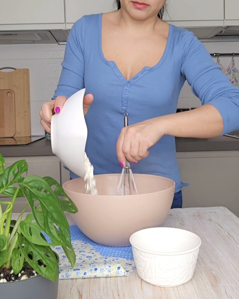 Finalmente, incorpora la harina y por último la levadura en polvo, si es posible tamízalo todo.