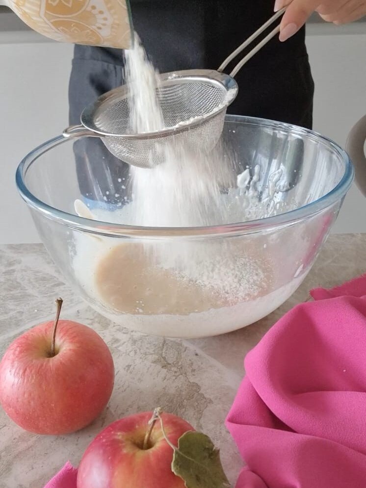 Finalmente, incorporad la harina y por último la levadura en polvo, si es posible, tamizad todo.