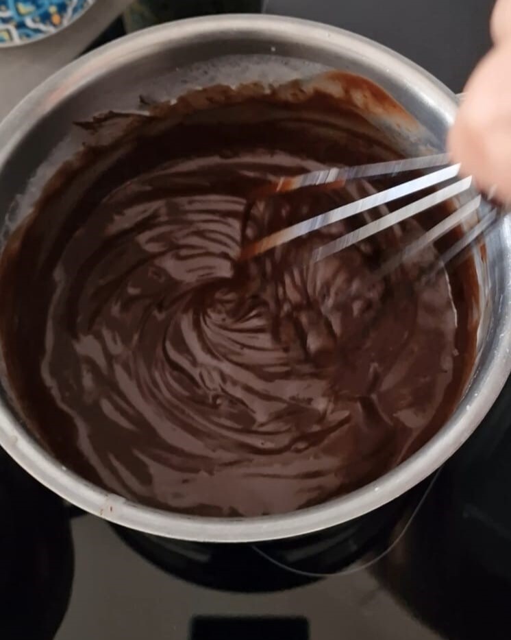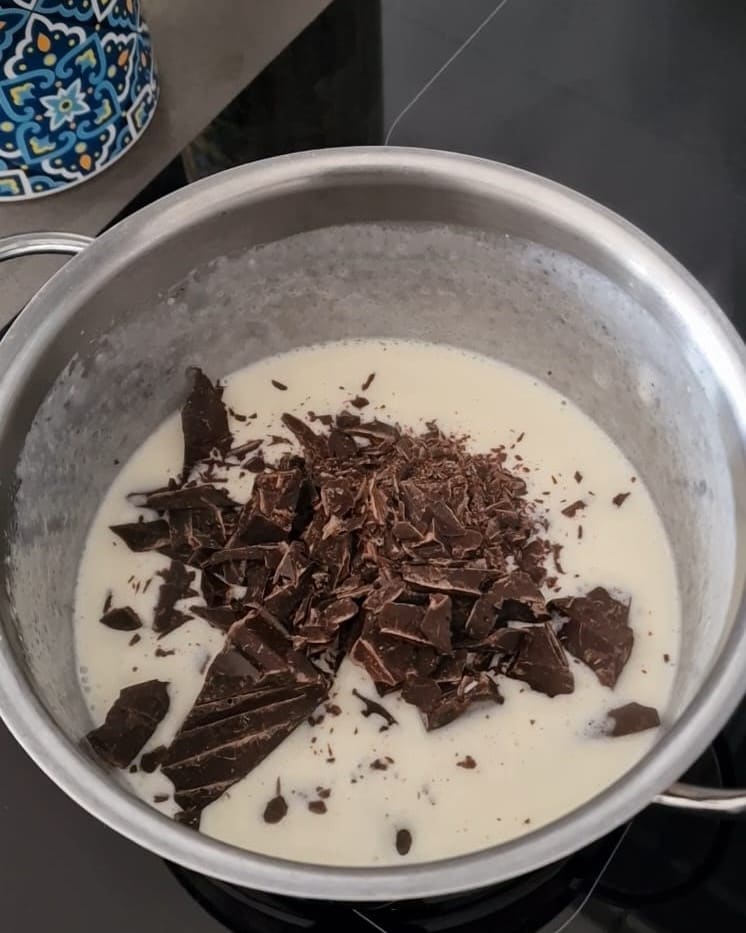 A continuación, deja enfriar la ganache a temperatura ambiente.