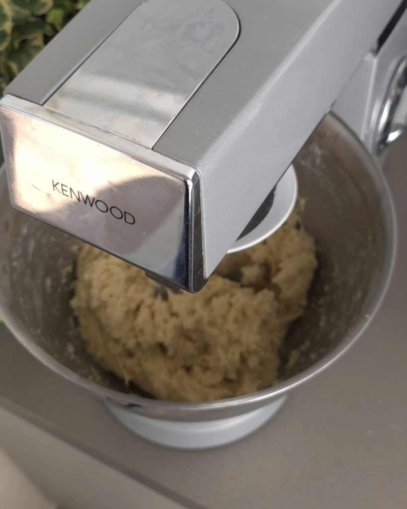 En este punto, poner en marcha la batidora y verter el huevo, el agua y como último paso, añadir la mantequilla blanda cortada en trozos. Amasar bien todo.