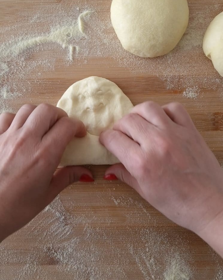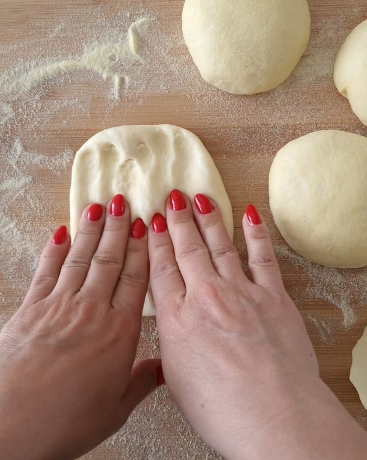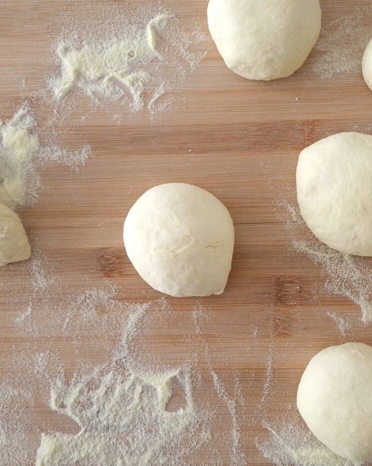 • Luego, forma panecillos de 120 g como máximo 140 g. Déjalos reposar 30 minutos. Estíralos, enróllalos sobre sí mismos, dándoles una forma un poco alargada y déjalos reposar otros 30 minutos.