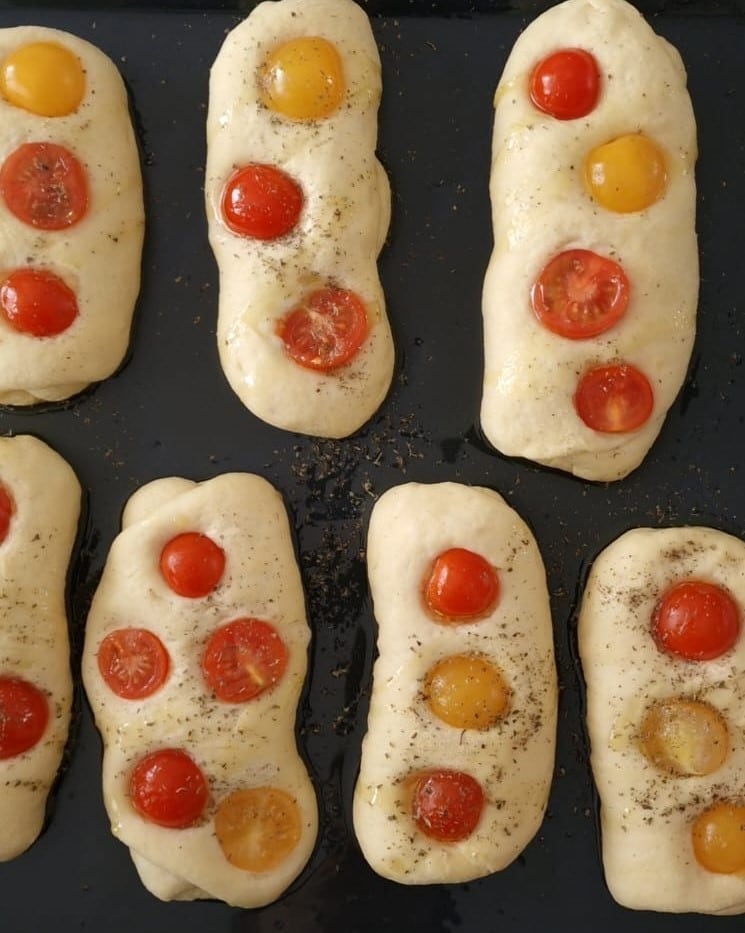 Panecillos suavísimos con tomatitos, listos para buffets y fiestas de cumpleaños, pero también ideales para la merienda o como aperitivo. Muy sencillos de hacer, al alcance de todos, incluso de los menos expertos en masas leudadas. Están aromatizados con orégano y adornados con tomatitos y aceitunas, ¡son realmente increíbles! Perfectos para proponer como aperitivo o simplemente como merienda. A los niños, y no solo a ellos, les encantarán. Quizás también os interesen: