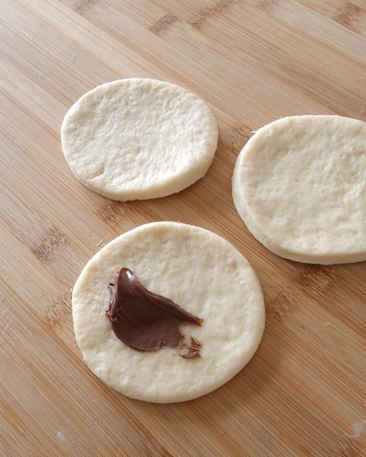 • Rellenad con nutella y mojadlos ligeramente con agua y cerradlos en media luna.