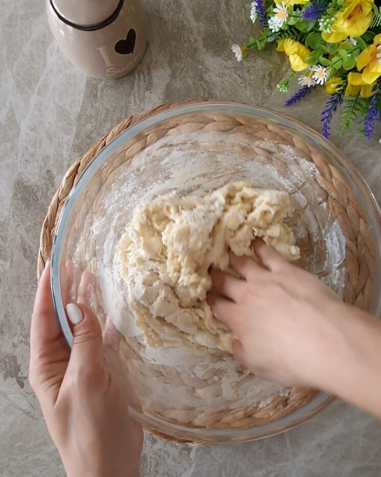 • Amasad hasta obtener un bloque liso y bien amalgamado, luego extendéis la masa con la ayuda de un rodillo.