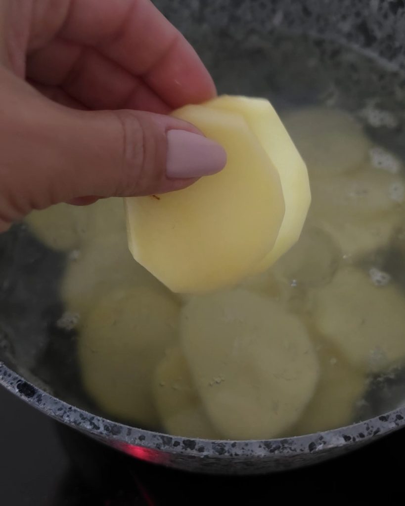 Comienza pelando las papas, luego córtalas en rodajas no demasiado gruesas, tratando de hacerlas todas del mismo tamaño.
