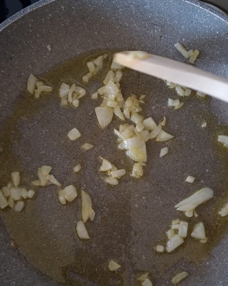 • Mientras tanto, en una sartén sofríe la cebolla con un chorrito de aceite de oliva.