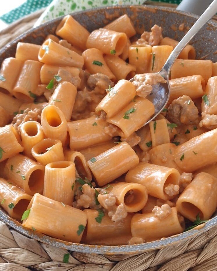 Pasta a la carcelera es uno de mis primeros platos favoritos, la receta es fácil y rápida. Hace tiempo hice una pequeña investigación sobre por qué se llama así, probablemente por los sabores fuertes, como el chile y la salchicha, pero algunos suponen que es por las líneas de la pasta, que recuerdan a las barras de una prisión. Más allá del nombre, se trata de un primer plato muy sabroso, pero igualmente adecuado para todos los paladares. Se prepara realmente rápido y es perfecta para comidas familiares o cenas de medianoche!