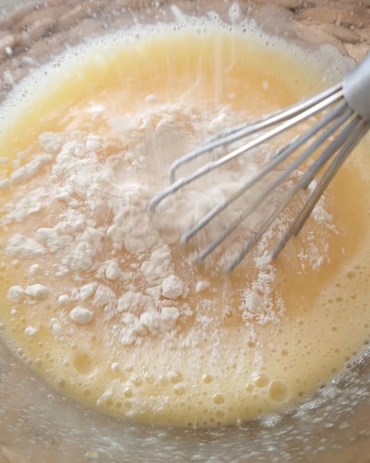 Luego, verted el aceite en un hilo y la leche, después la harina, poco a poco incorporando bien todo.