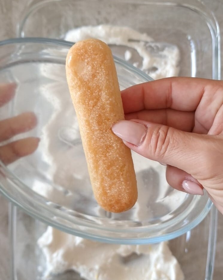 Entonces, mojáis las galletas en el almíbar y luego en una fuente, alternáis las capas de galletas y crema.