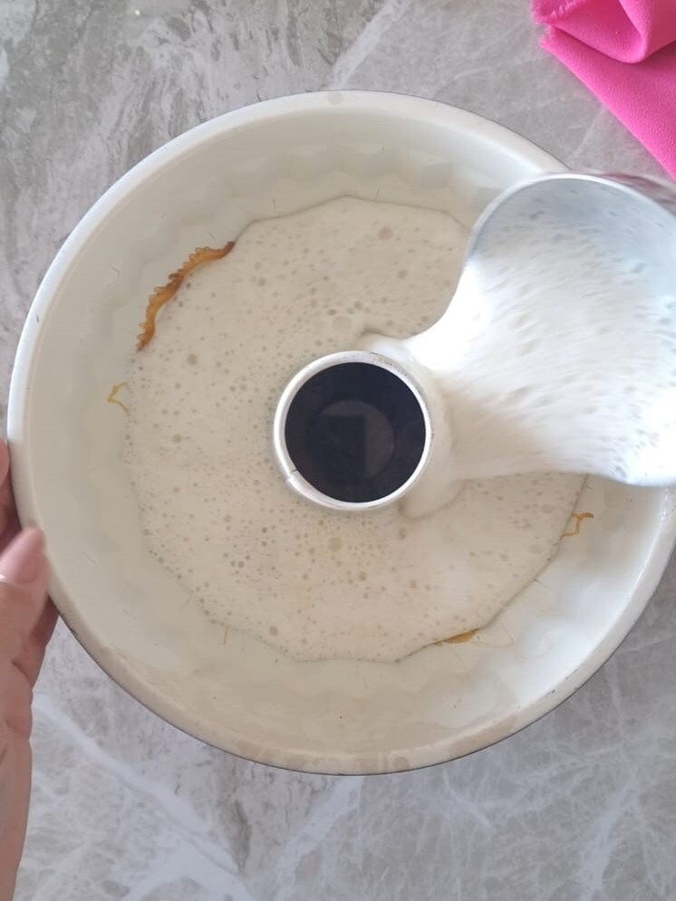 En este punto, vierte el caramelo en el molde de corona haciendo girar la mezcla.