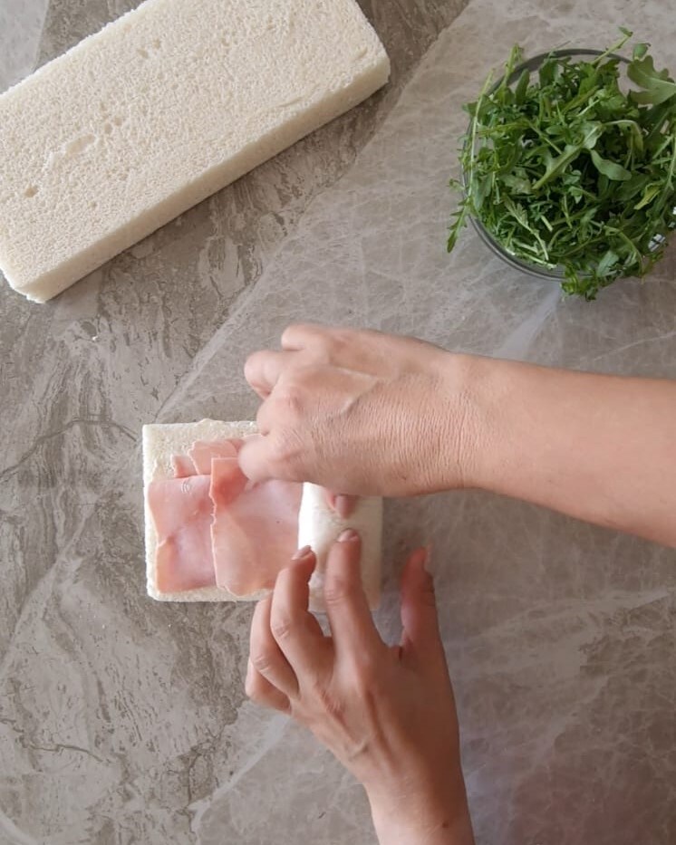 En este punto, rellena con mayonesa, jamón cocido y queso.