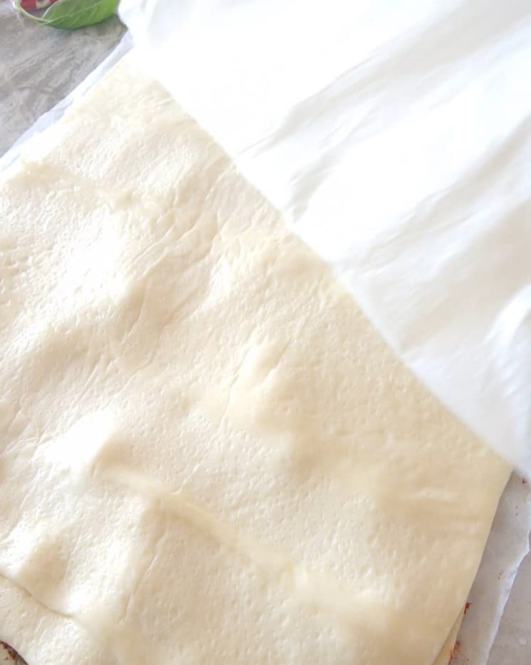 En este punto, con el segundo rollo de masa de pizza, cubre el relleno haciendo que se adhiera a la base.