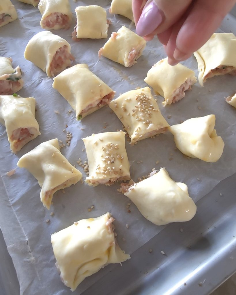 Pintadlos con el huevo batido y decorad con las semillas de sésamo.