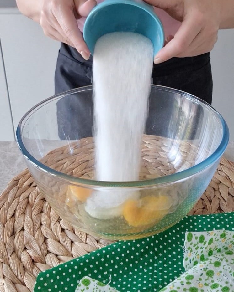 Comenzad batiendo con una batidora los huevos con el azúcar en un bol grande, luego añadid la nutella y mezclad con las varillas eléctricas.