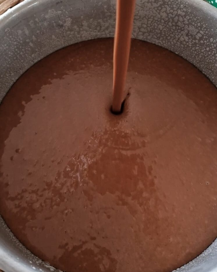 A continuación, verted la leche y el aceite, mezclando continuamente, y finalmente incorporad las harinas y la levadura tamizadas, y mezclad bien.