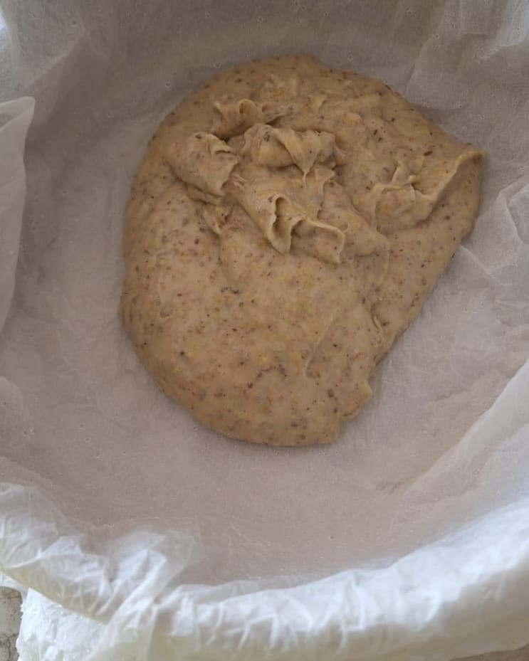 Verted la mezcla en un molde de 24 cm cubierto con papel de horno previamente humedecido y escurrido.