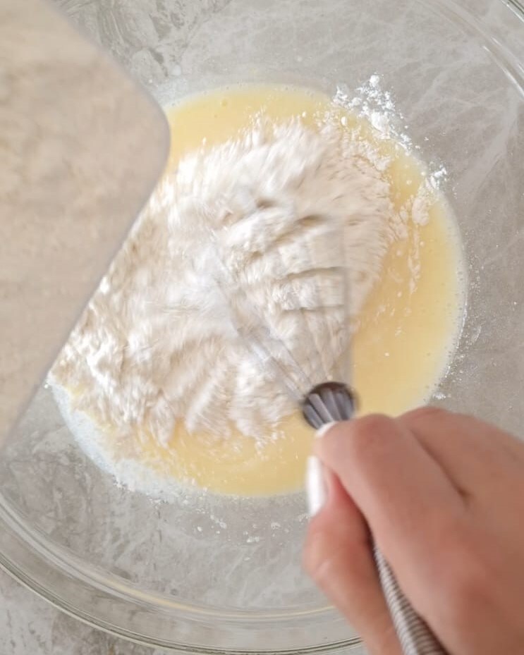 Añadid el yogur y luego incorporad las harinas poco a poco.